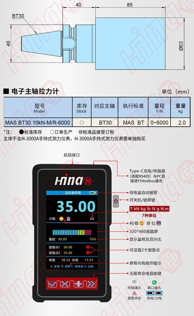 BT30加工中心测力计测定器电子主轴拉力计
