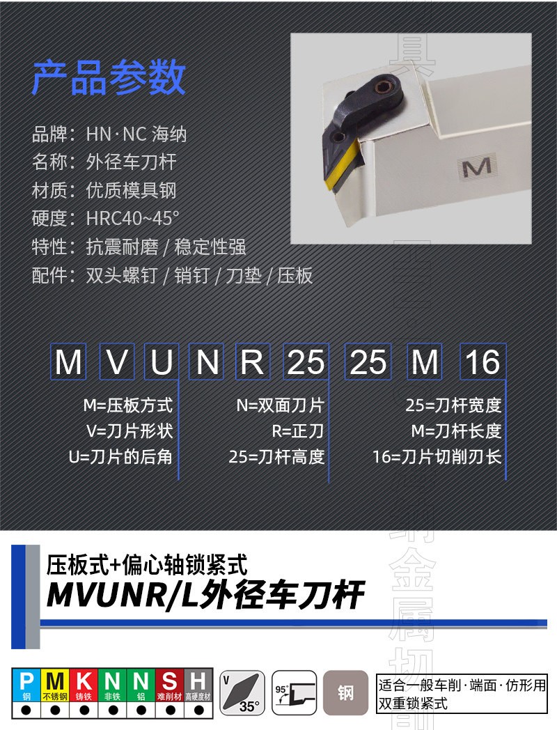 HN.NC海纳数控车刀杆MVUNL数控车床外圆车刀杆