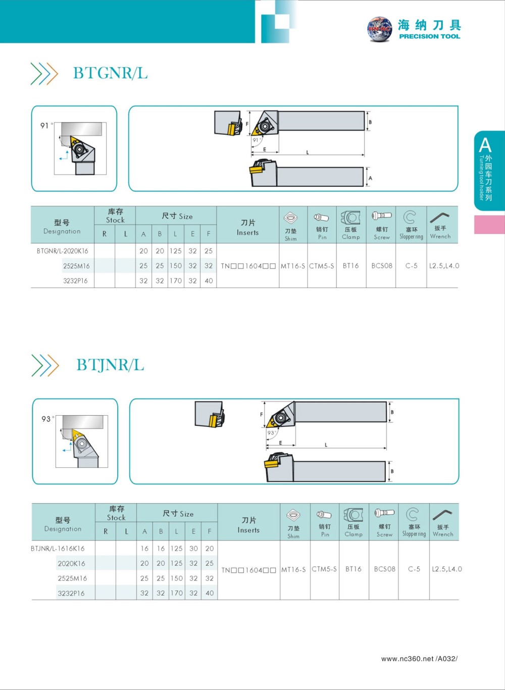 HN.NC海纳数控车刀杆BTJNR 93度外圆车刀杆