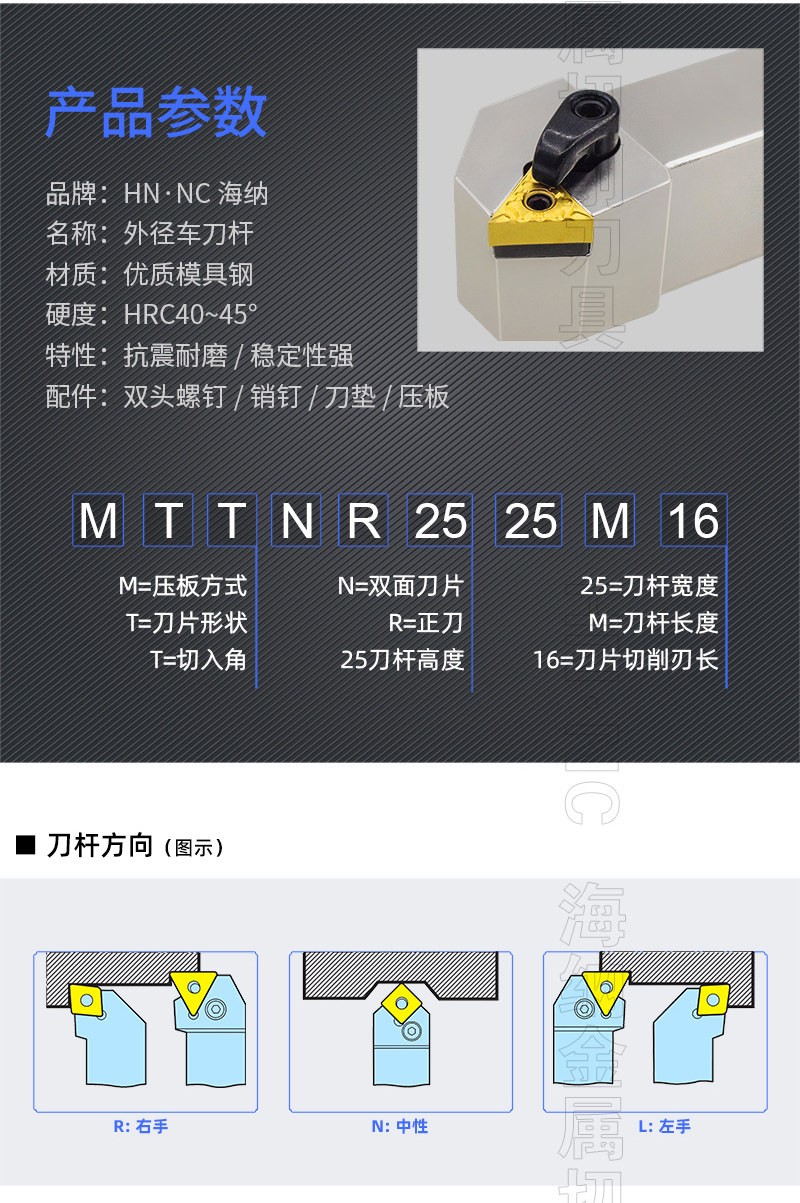 HN.NC海纳数控车刀杆MTRNR 外圆车刀杆