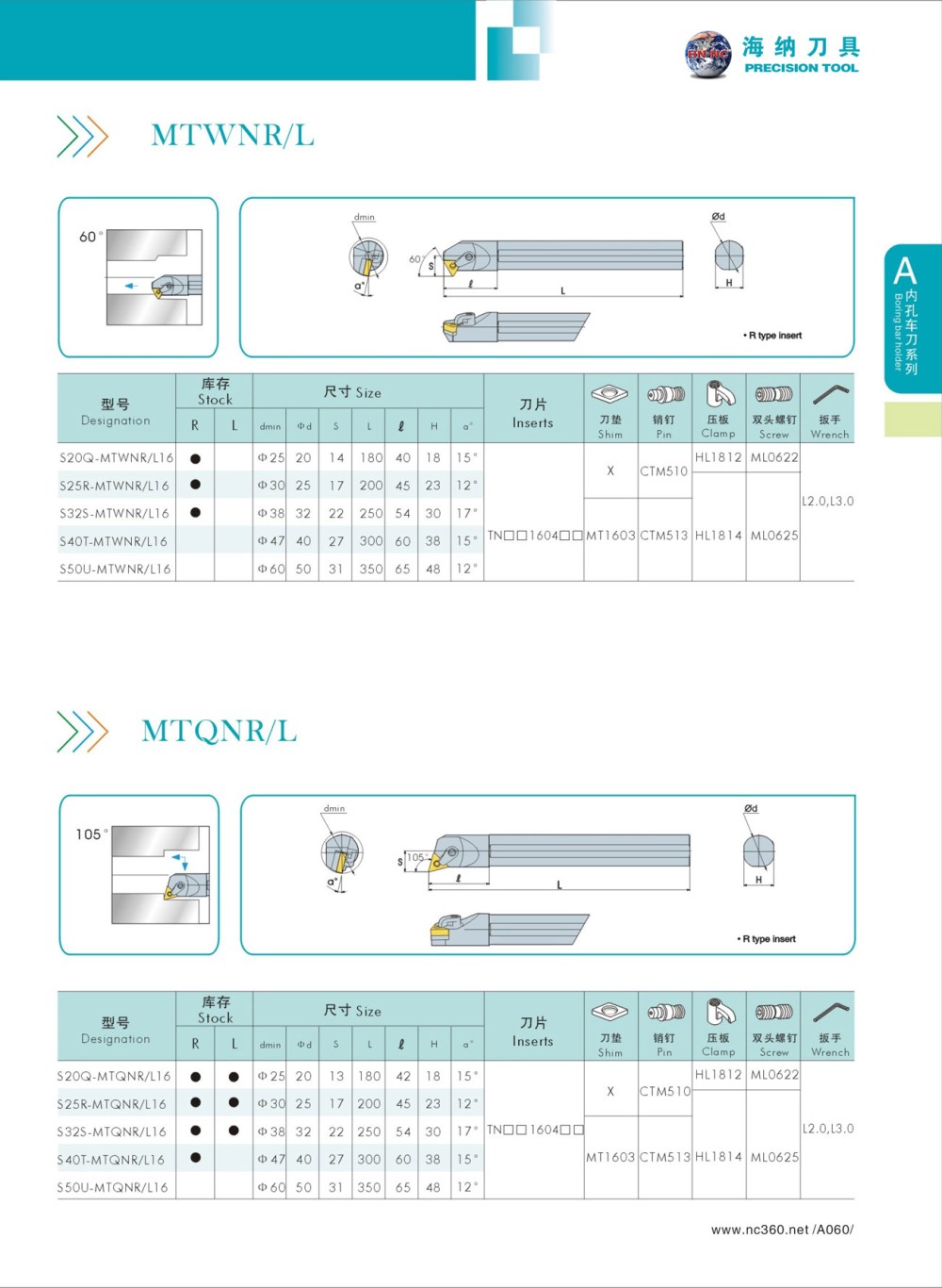 HN.NC海纳数控车刀杆MTWNL 60度内径镗孔内孔车