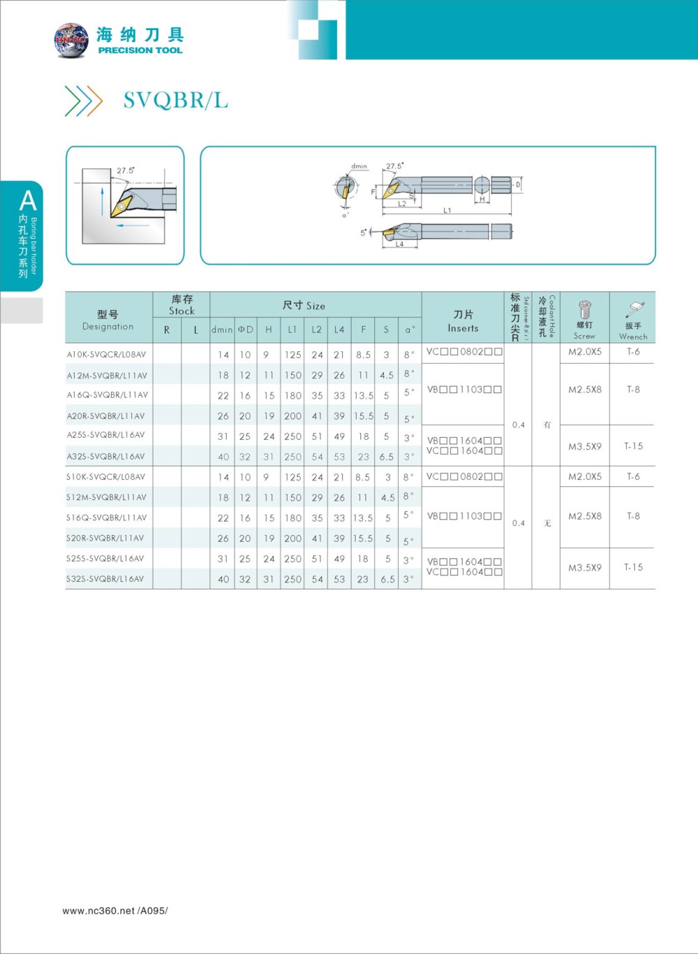 HN.NC海纳数控车刀杆SVQBR 117.5度内径内孔车刀杆