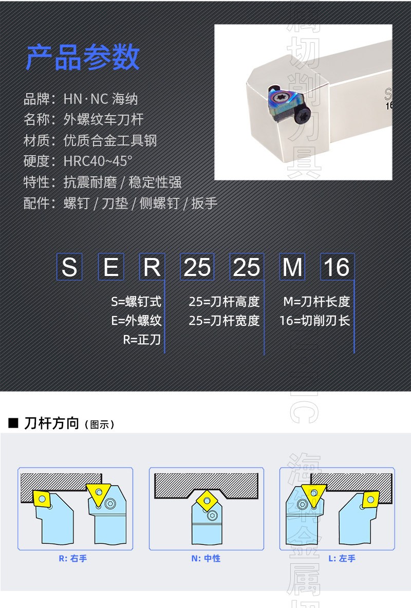 HN.NC海纳数控车刀杆SER外螺纹挑丝车刀杆