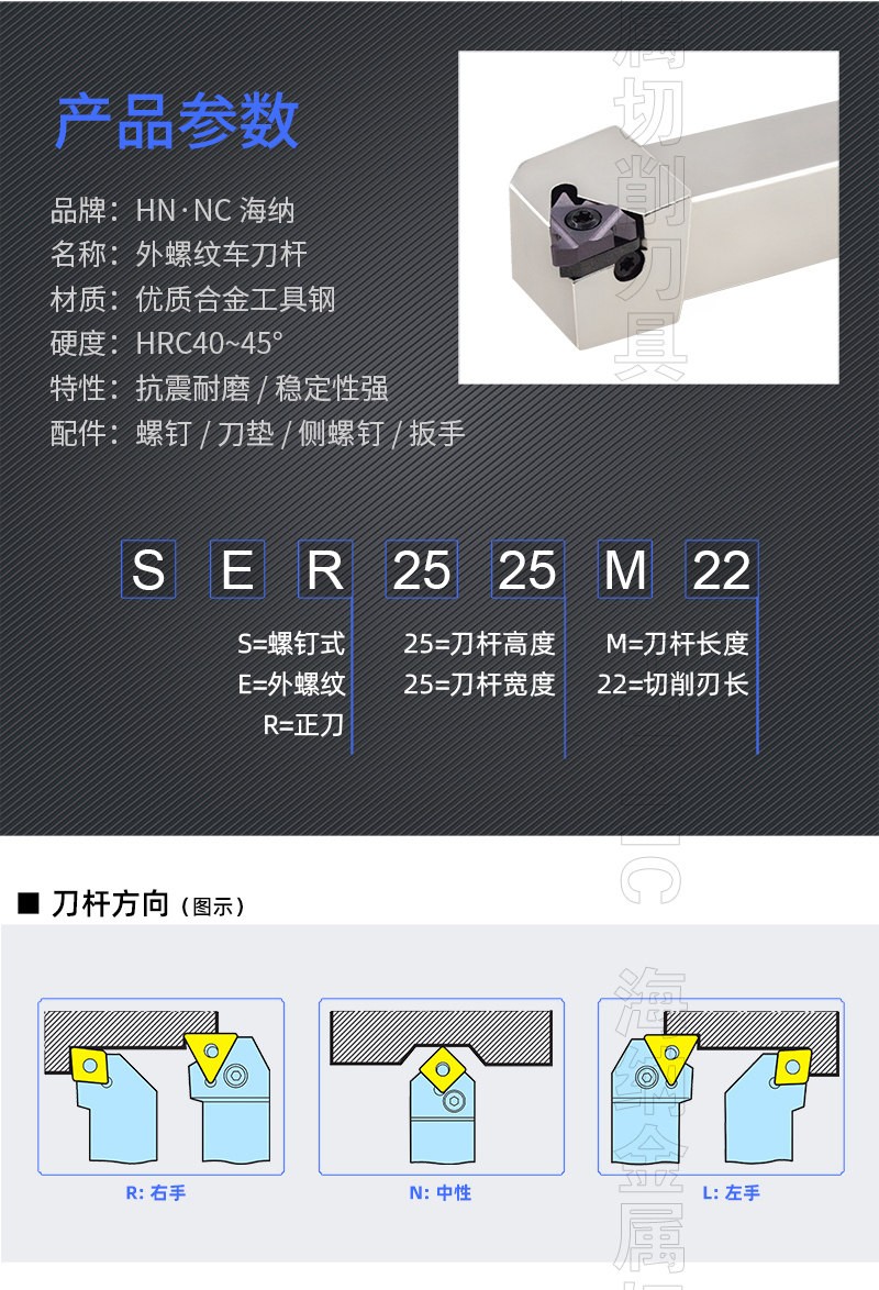 HN.NC海纳数控车刀杆SER外螺纹挑丝车刀杆