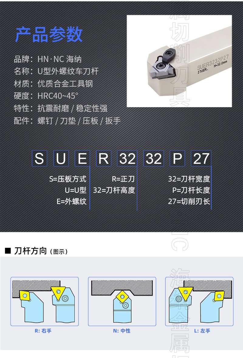 HN.NC海纳数控车刀杆SER外螺纹挑丝车刀杆