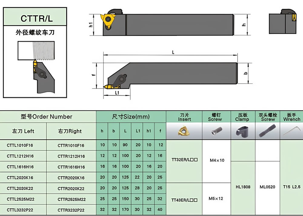 HN.NC海纳数控车刀杆CTTL立装外螺纹车刀杆