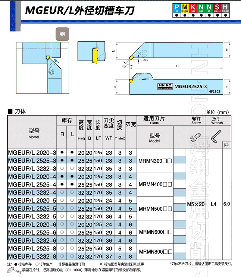 HN.NC海纳数控车刀杆MGEUR 45度外径切槽车刀杆