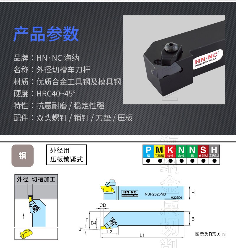 HN.NC海纳数控车刀杆NSL外径浅槽密封槽退刀槽数控车刀杆