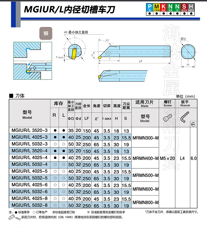 HN.NC海纳数控车刀杆MGIVL内径切槽车刀杆