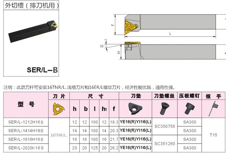 HN.NC海纳数控车刀杆SER外径切槽浅槽车刀杆