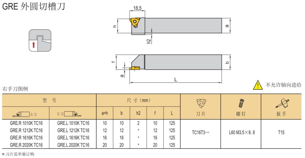 HN.NC海纳数控车刀杆GRE.R外径密封槽退刀槽卡簧槽切槽车刀杆