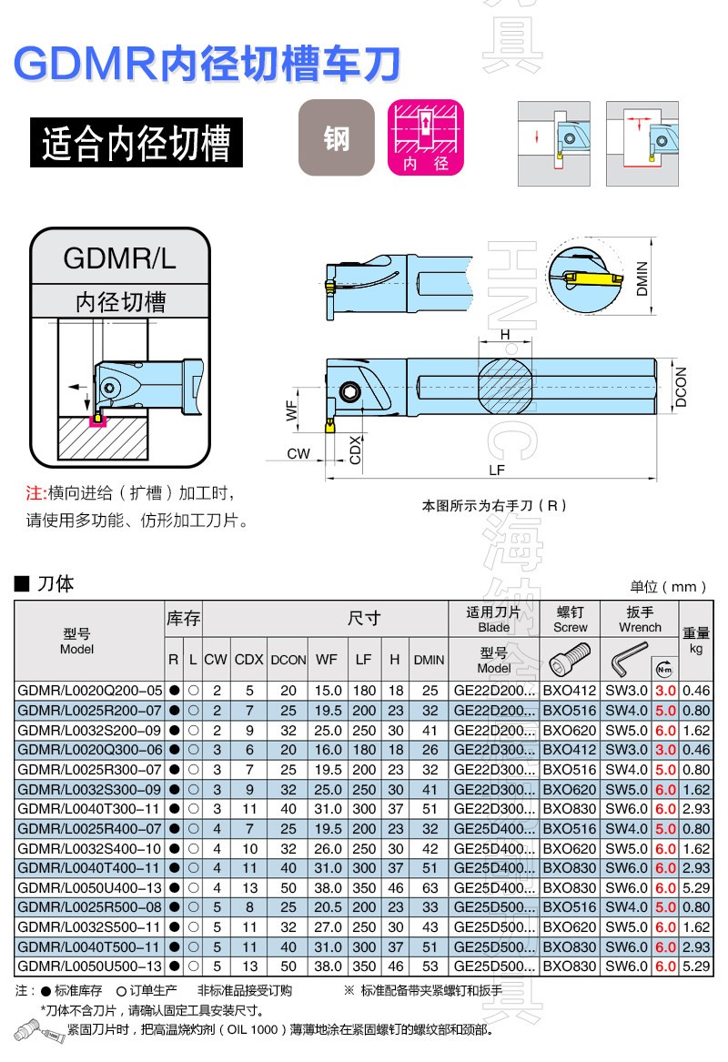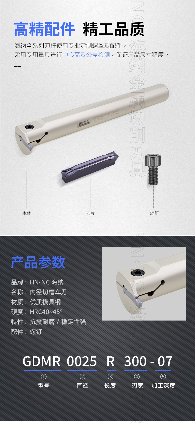 HN.NC海纳数控车刀杆GDMR狼牙内孔切槽车刀杆
