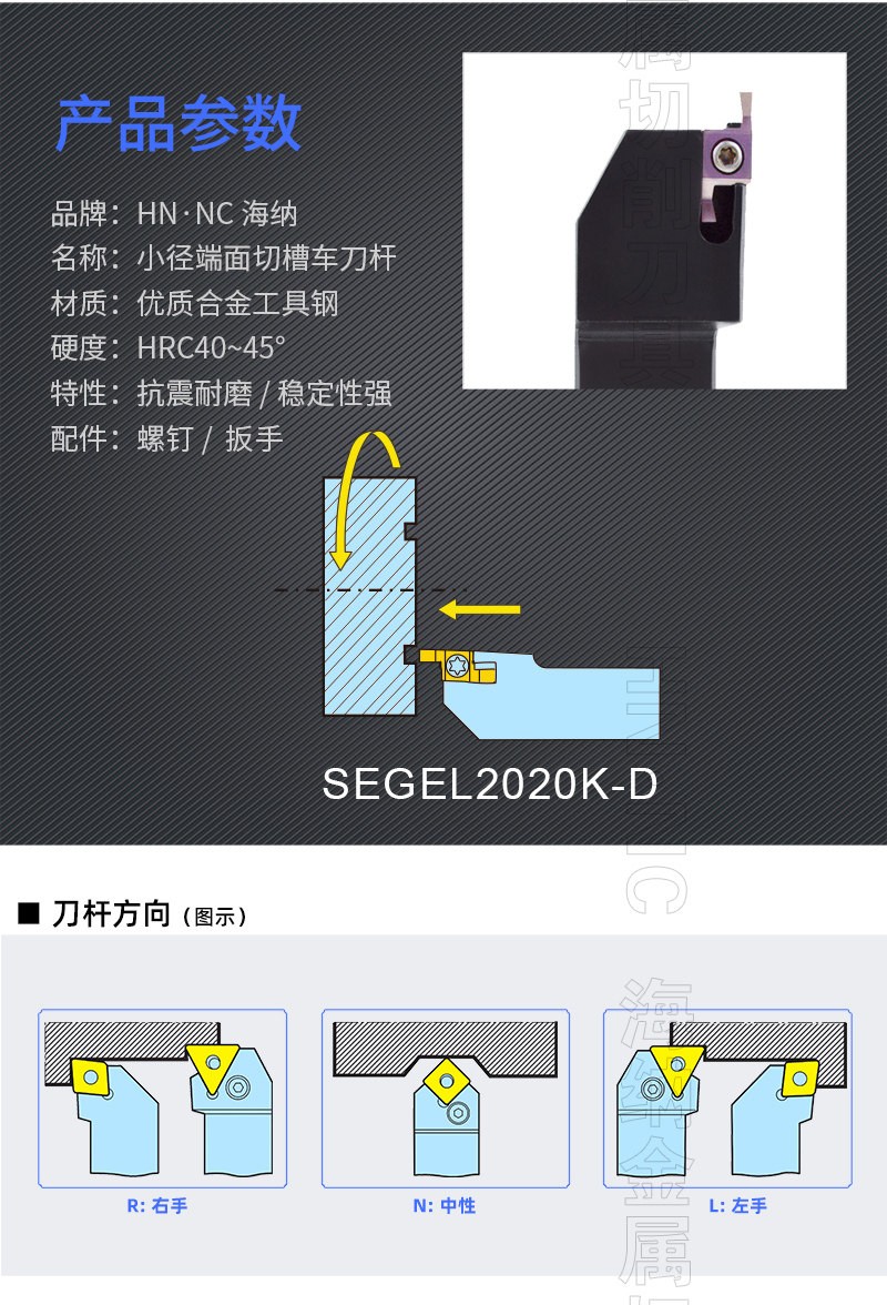 HN.NC海纳数控车刀杆SEGEL小径端面切槽车刀杆