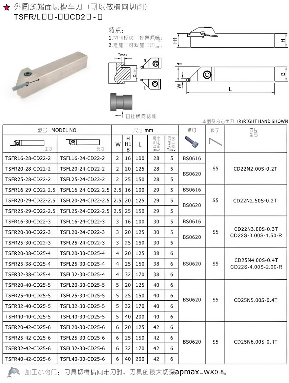 HN.NC海纳数控车刀杆TSFR外径浅槽端面车刀杆