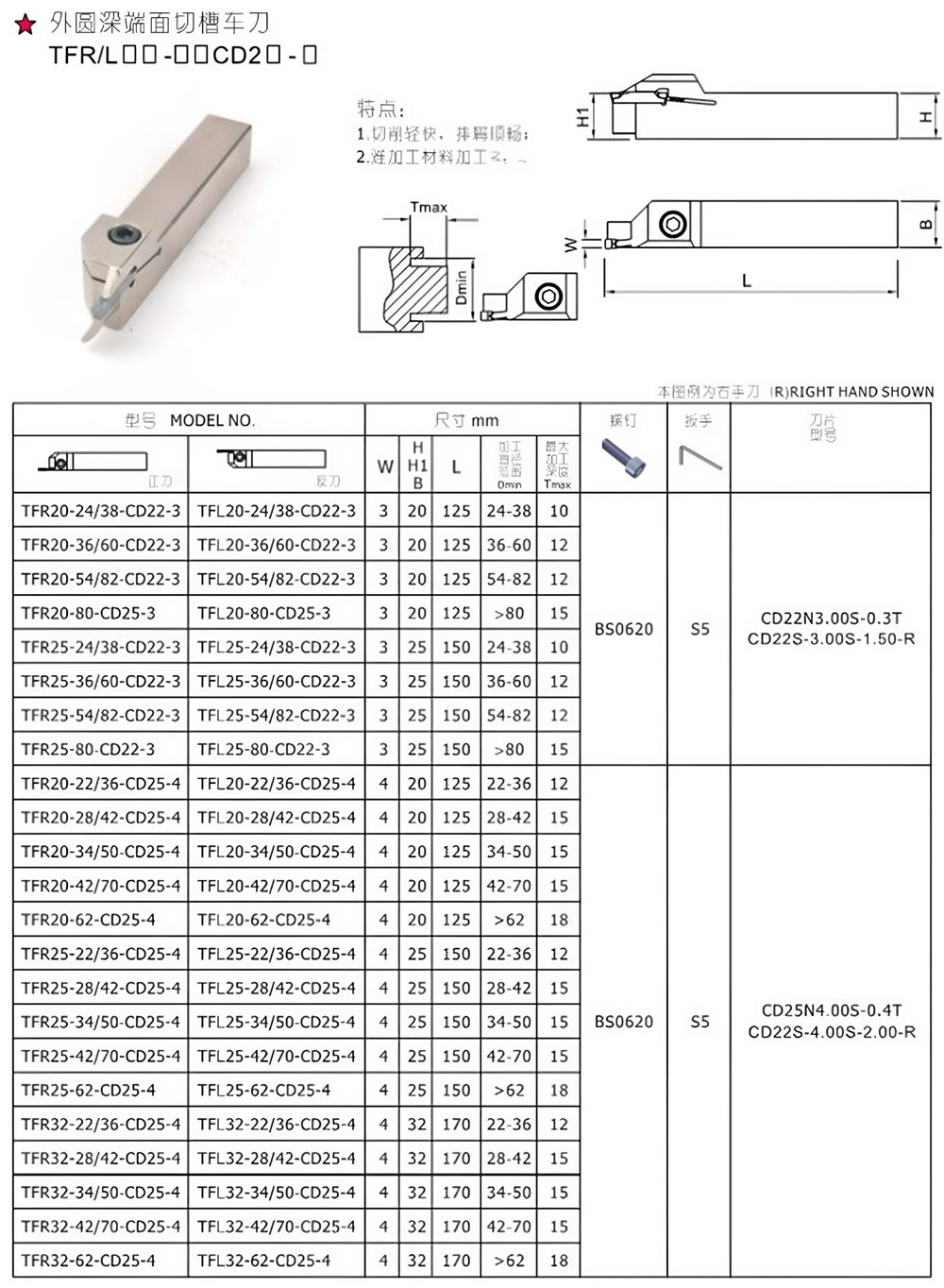 HN.NC海纳数控车刀杆FGHH325R单头端面切槽车刀