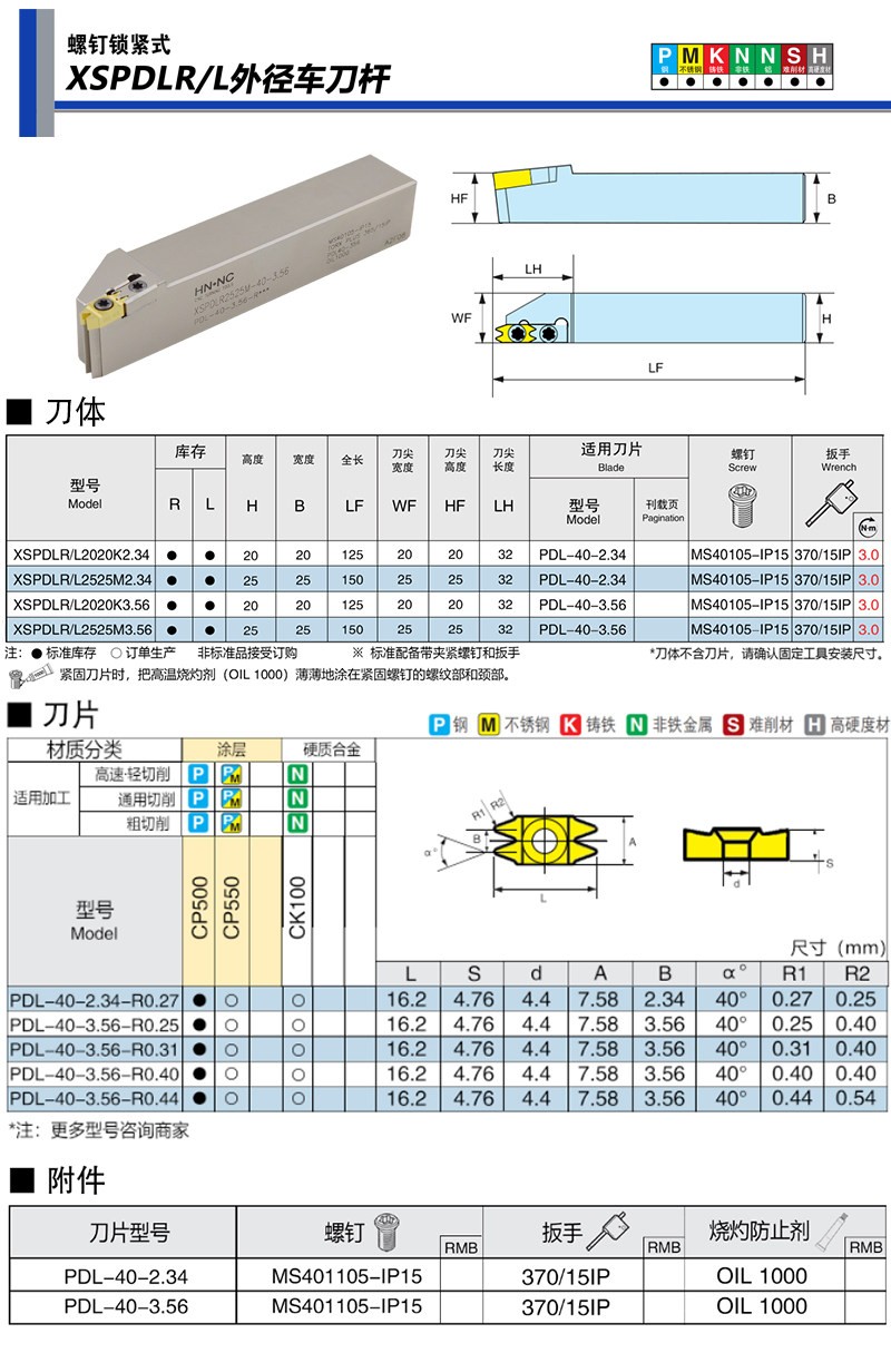 HN.NC海纳数控车刀杆XSPDLR 40度汽车双齿皮带轮车刀杆