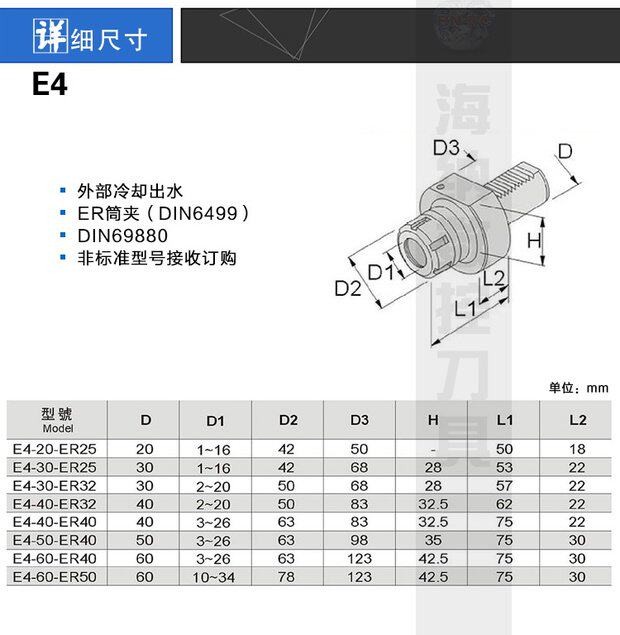 VDI标准型固定刀座E4内径弹簧夹头刀座