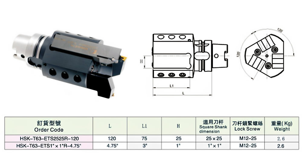 HSK-T63-ETV2525R-125轴向外径车刀座