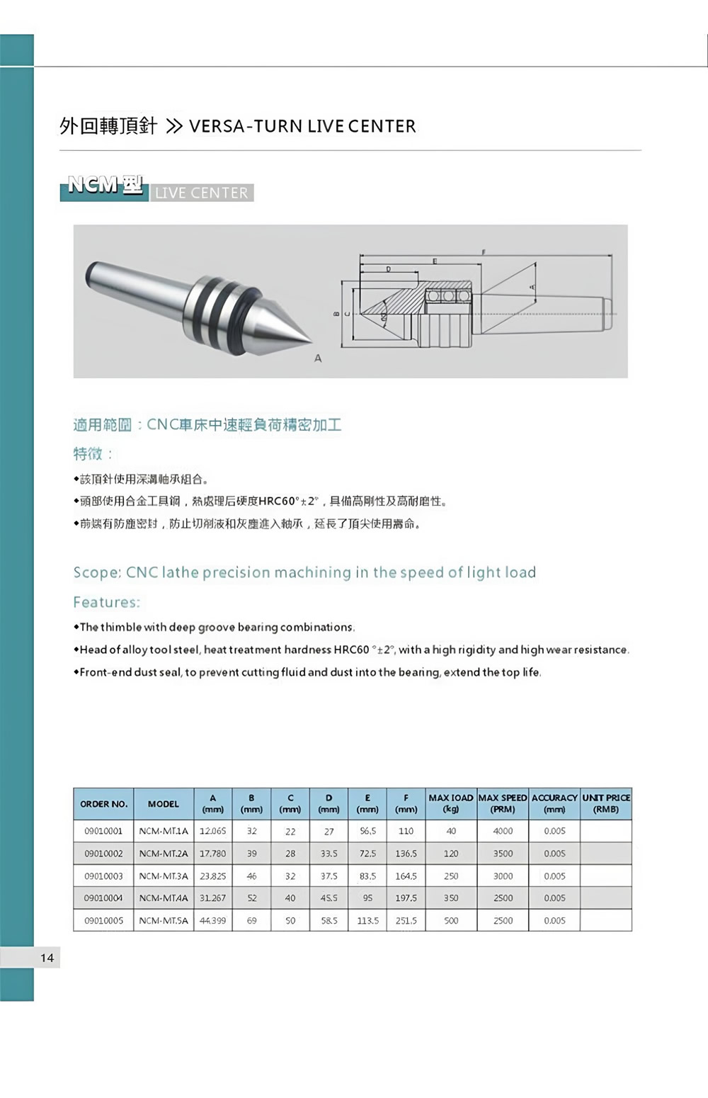 和舜NCP-MT高速加长型精密回转顶针