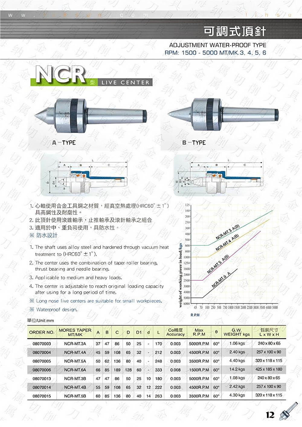台湾丽勳LI-LHUN重负荷精密回转顶尖NCR-MT活络CNC顶针