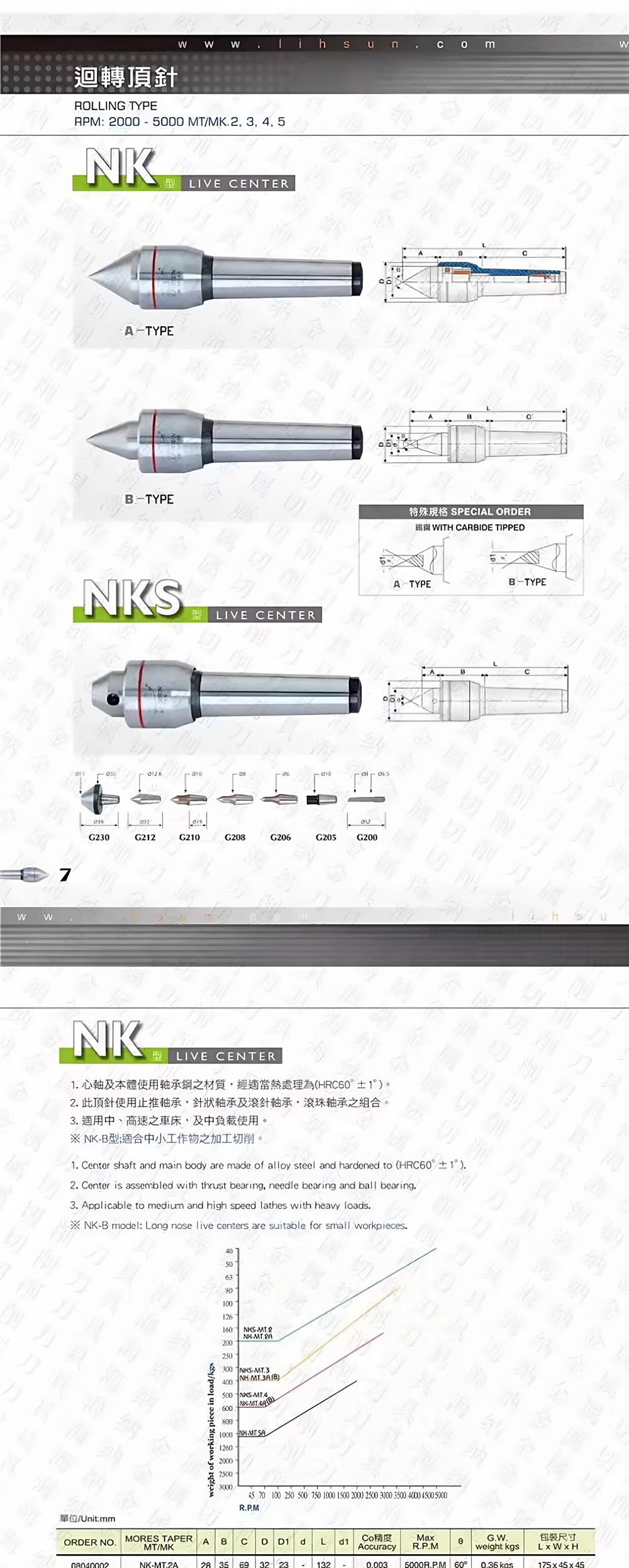 台湾丽勳LI-LHUN伞形活络顶尖BC-MT伞形回转顶针