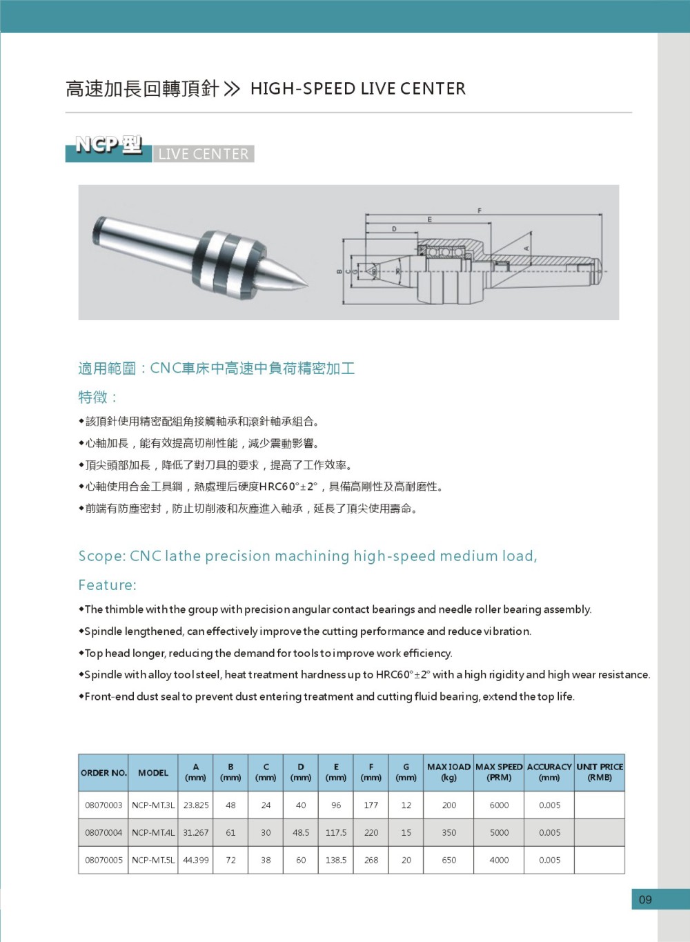 和舜NCP-MT高速加长型精密回转顶针