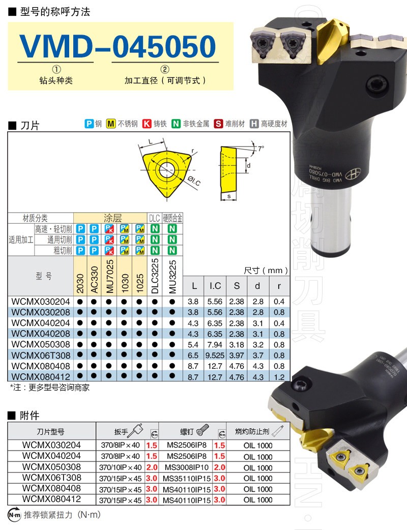 VMD快速钻头MXA-W5040大直径深孔暴力钻直柄刀杆