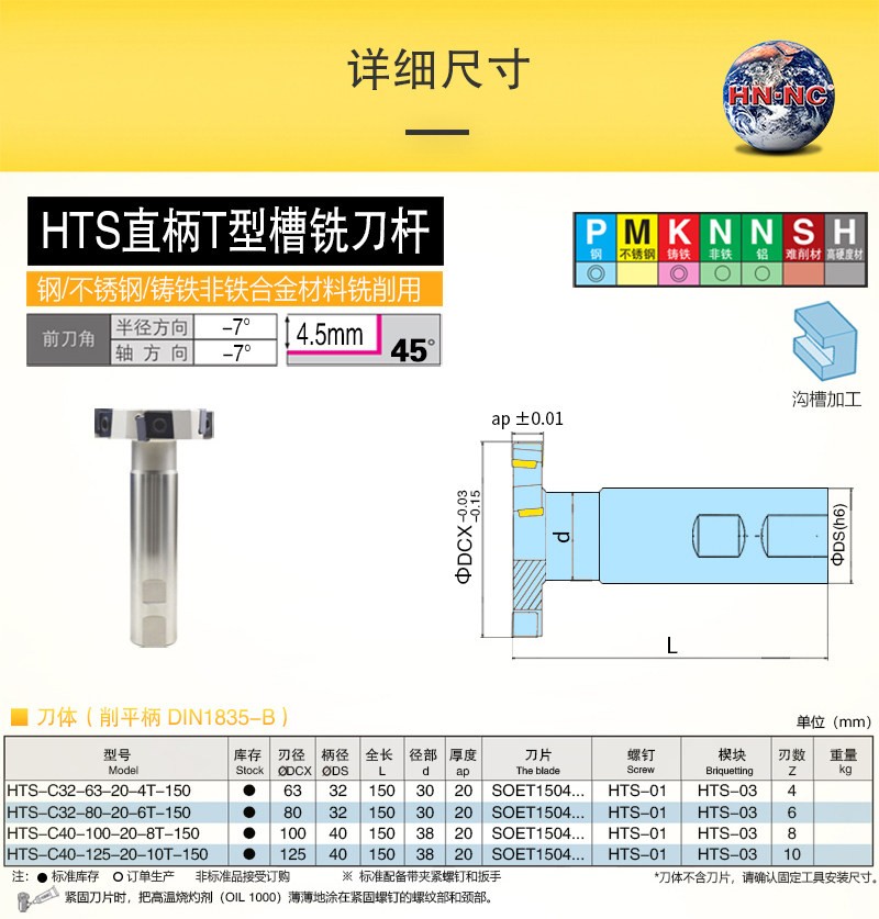 HTS-63/80/100/125三面刃切槽铣刀杆