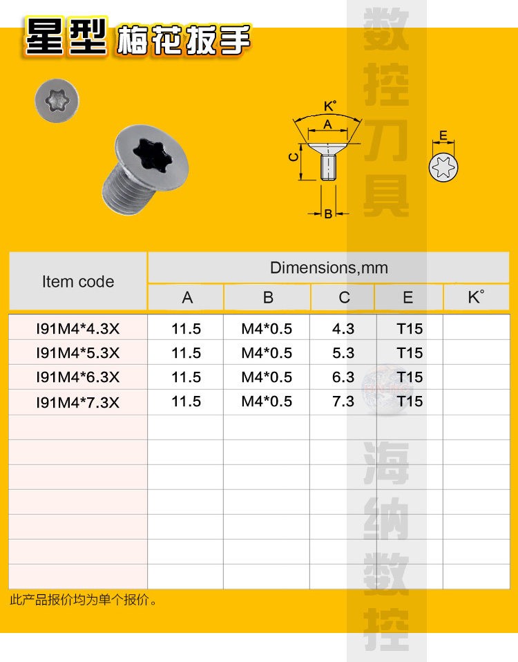 SMP01三面刃铣刀盘I91M4进口梅花螺钉