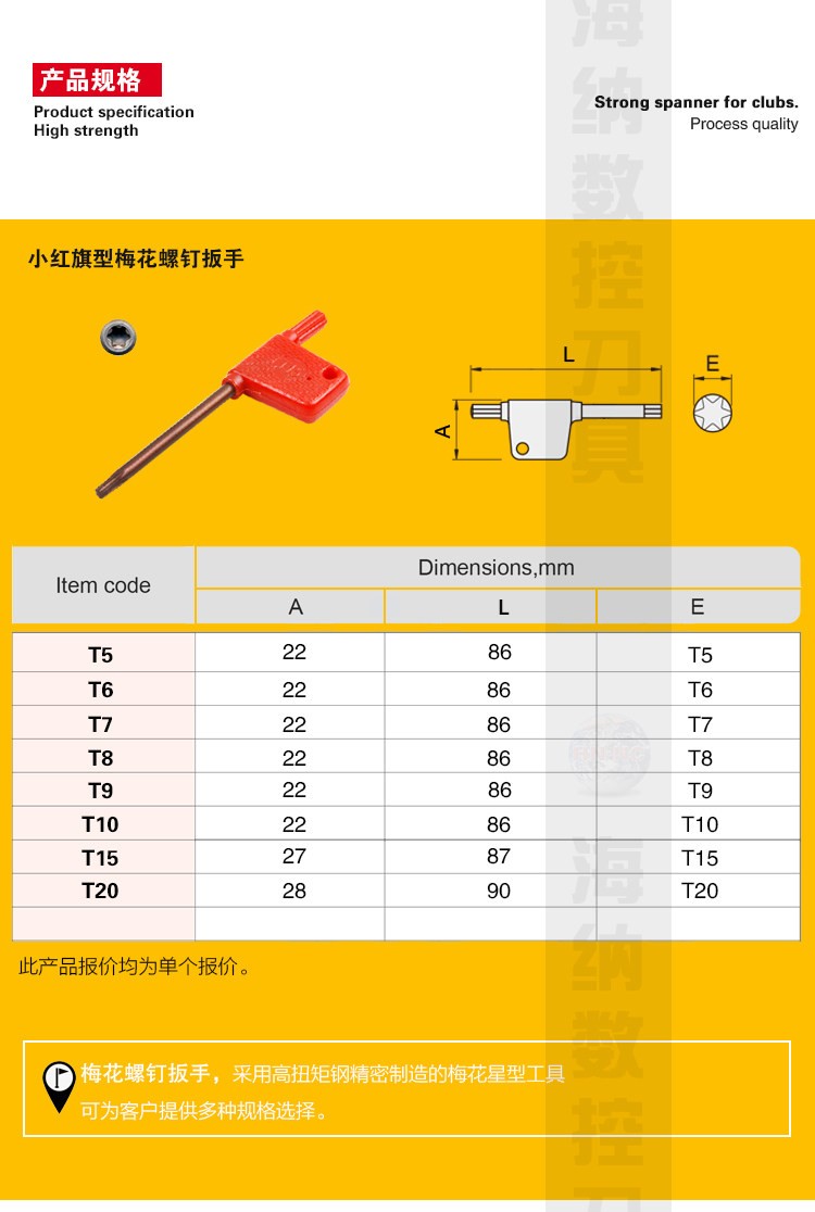 红旗梅花螺钉扳手数控刀具T型扳手
