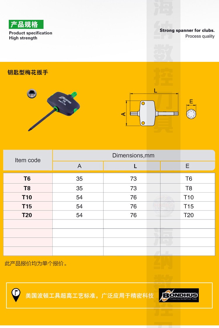 美国进口波顿T20梅花扳手数控刀具强力梅花扳手