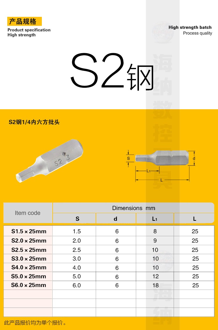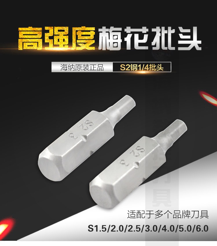 S2钢1/4旋具批头高强度内六方扭矩批头
