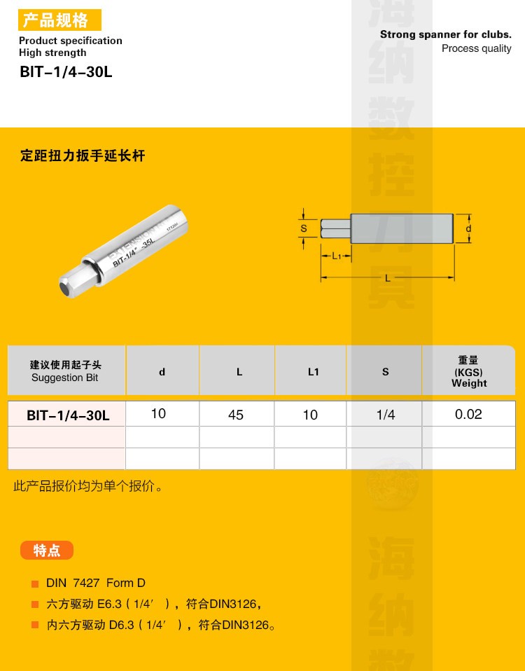 1/4旋具批头BIT-1/4-30L延长杆定距扭矩刀具扳手专用延长杆