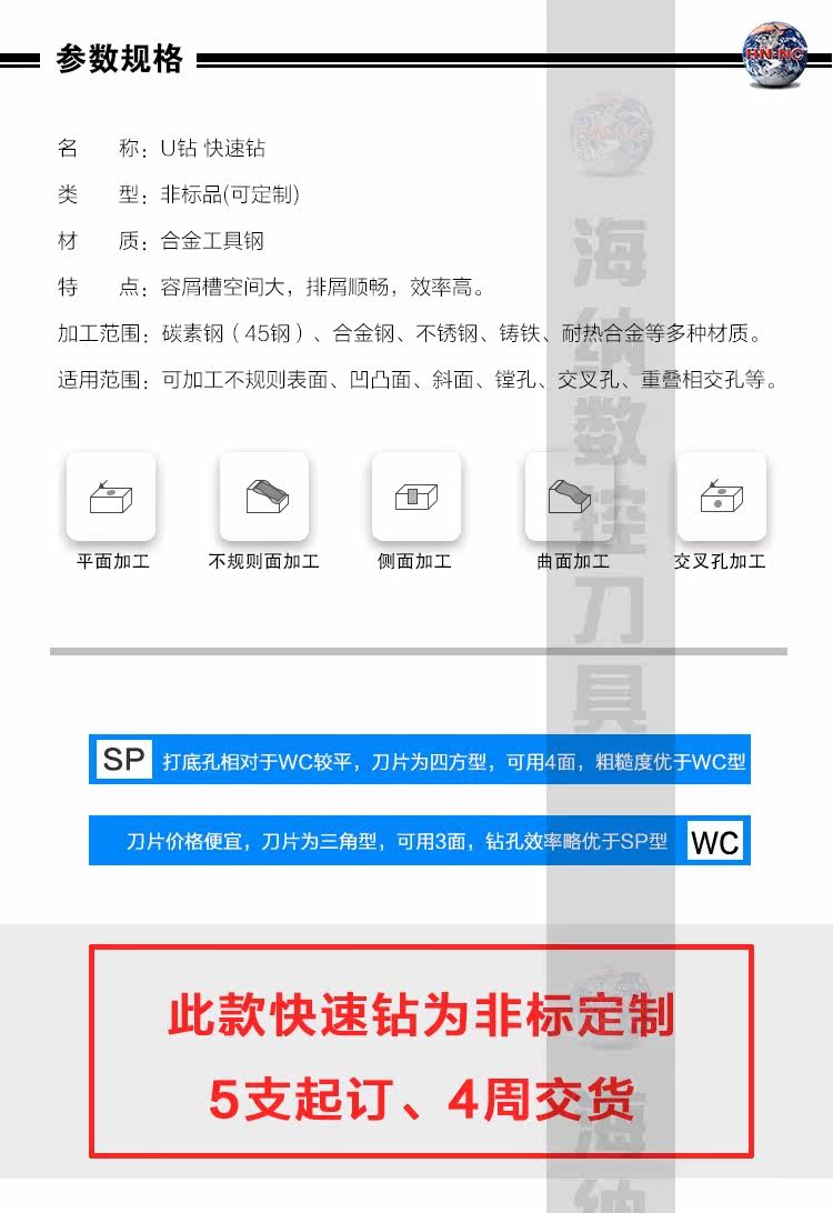 非标定制特殊快速钻头暴力钻头U钻潜孔钻喷水可转位钻头