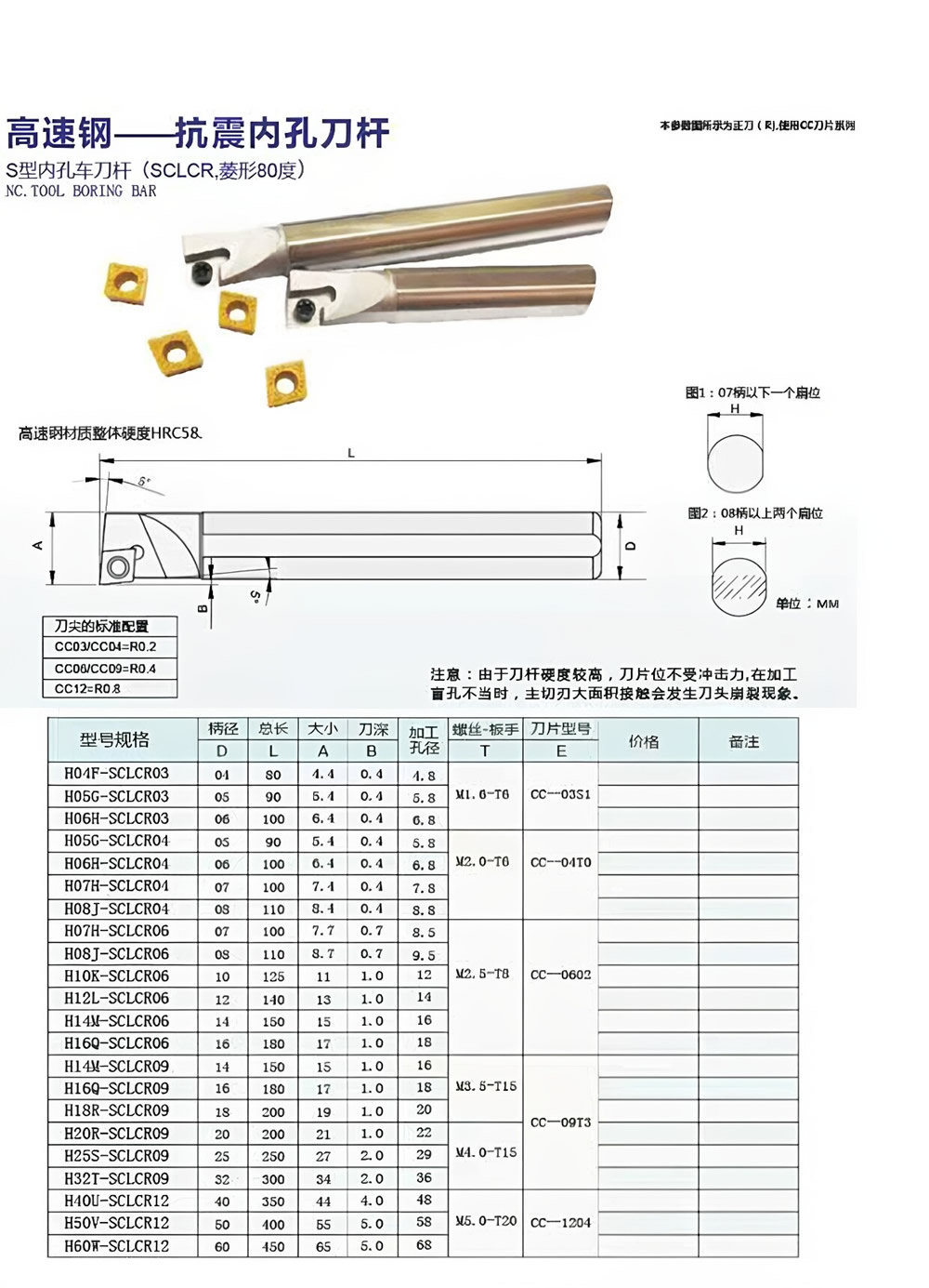 HN.NC海纳数控车刀杆SCLCR09高速钢抗震镗孔车刀杆