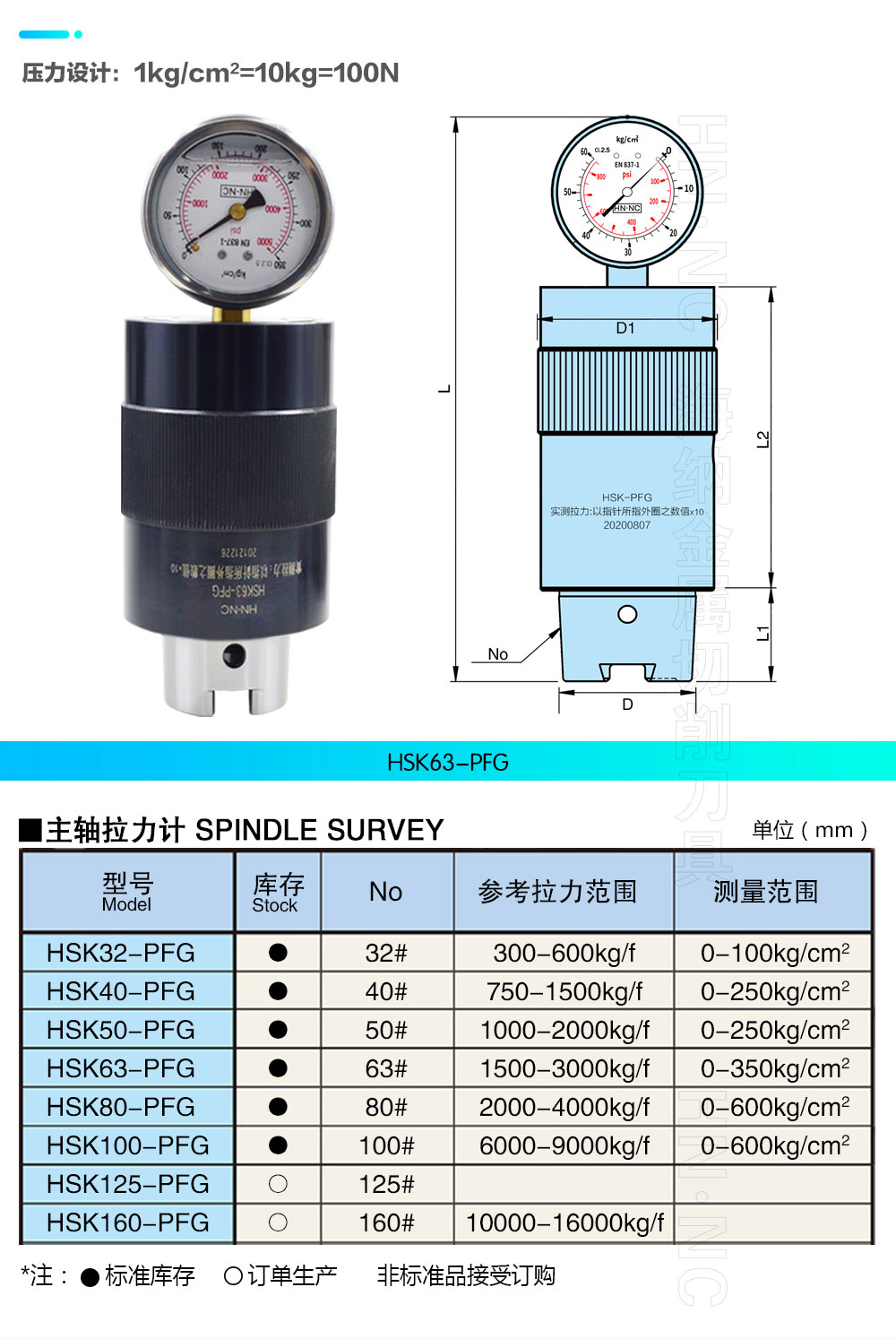 海纳HSK加工中心主轴拉力计检具拉力测定器